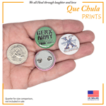 - One inch (25mm) buttons are the perfect size to pin just about anywhere : hats, bags, backpacks, jackets, scarfs... and more.