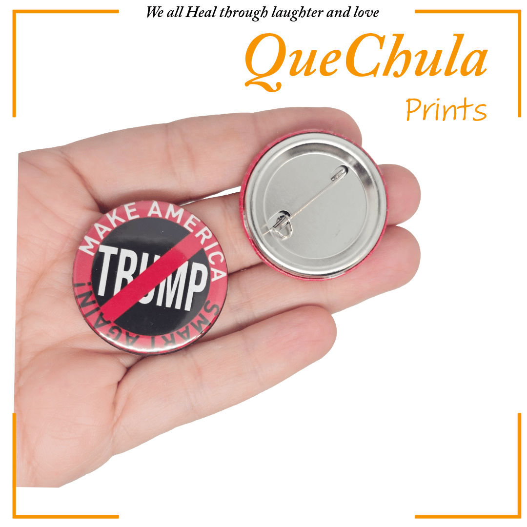 All metal backings, in the popular 1.5” (37mm) size, No cheap plastic parts, quality premium photo paper, glossy mylar finish.