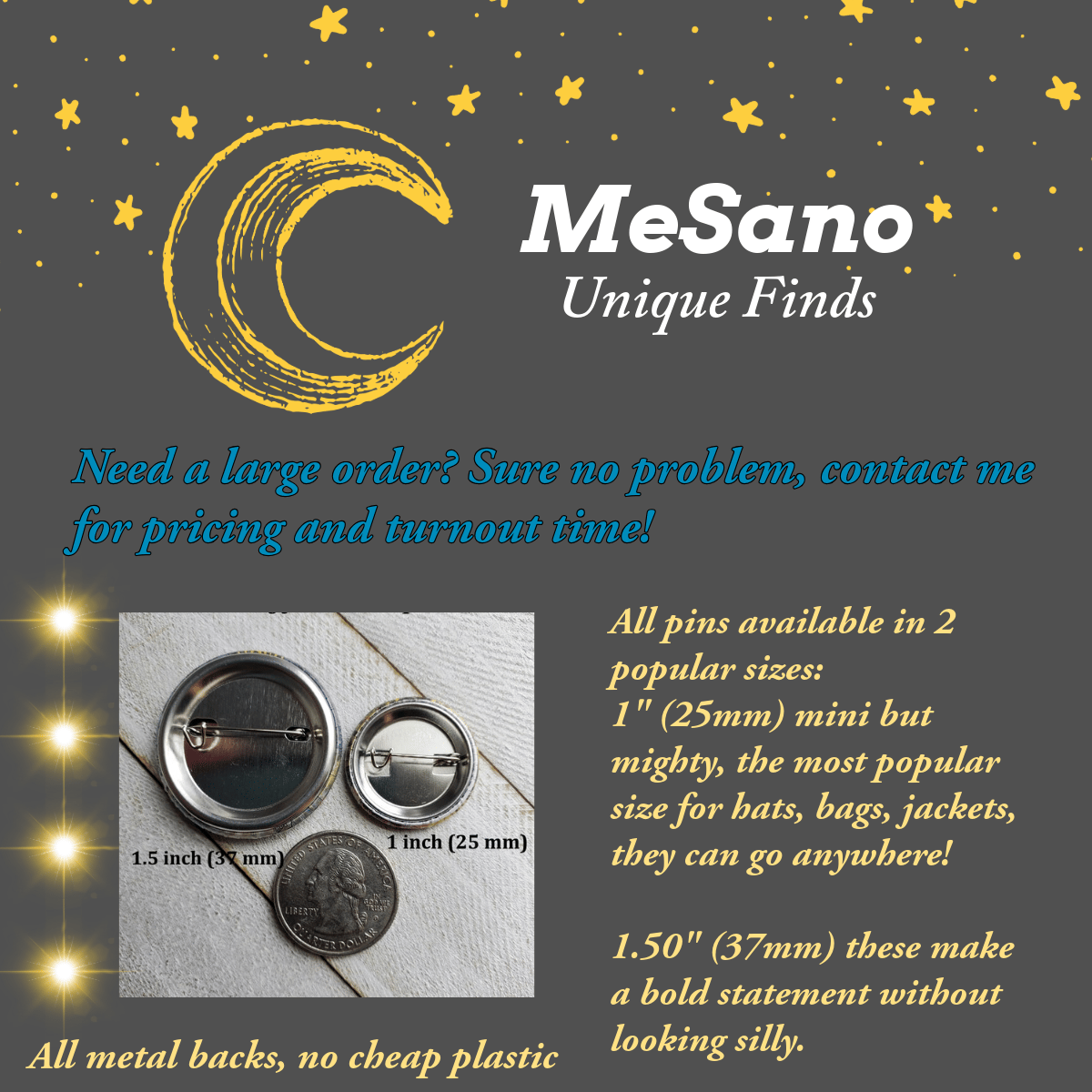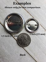 - One inch (25mm) buttons are the perfect size to pin just about anywhere : hats, bags, backpacks, jackets, scarfs... and more.