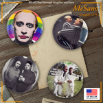 All metal backings, in the popular 1.5” (37mm) size, No cheap plastic parts, quality premium photo paper, glossy mylar finish.